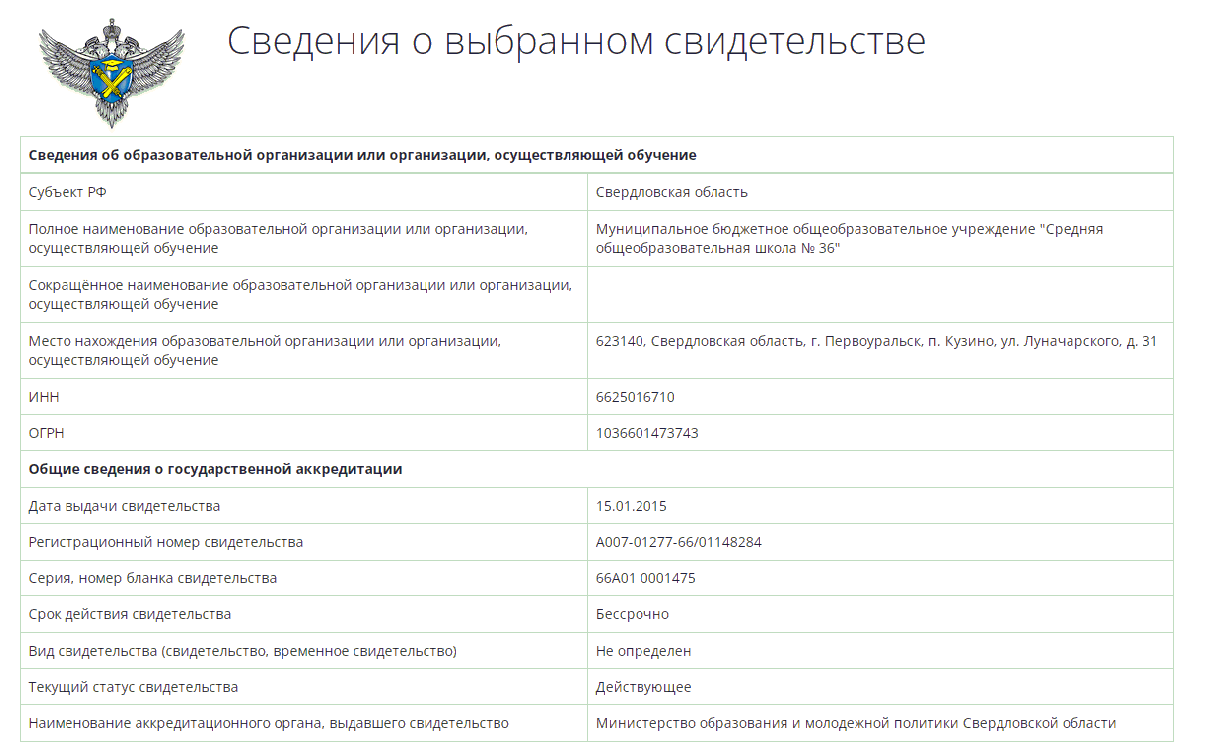 Полное наименование образовательной организации* Муниципальное бюджетное общеобразовательное учреждение "Средняя общеобразовательная школа № 36"